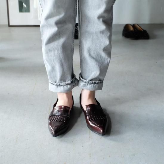 シャープな印象を与えるポインテッドシルエットに、キルトローファーならではの上品な可愛らしさを融合。