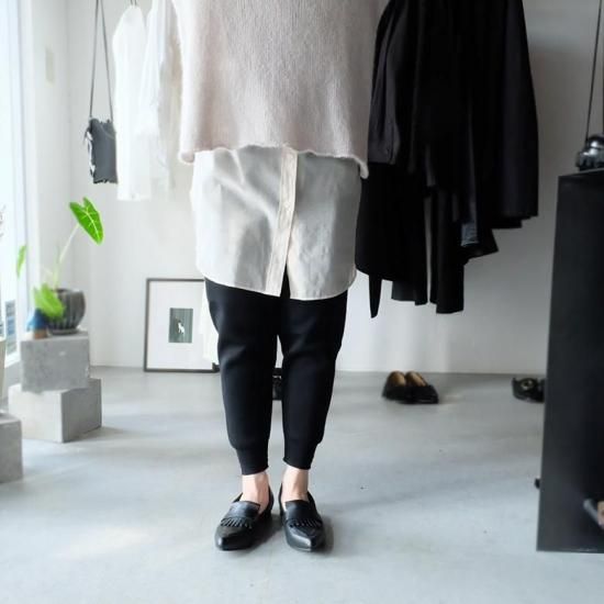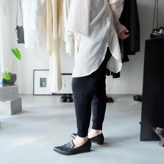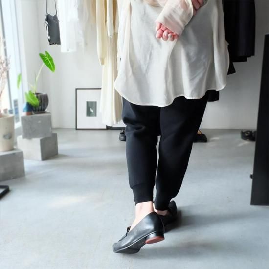 スマートなシルエットで女性らしい足元を作り、楽チンなのにスタイリッシュに決める。