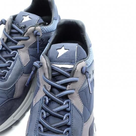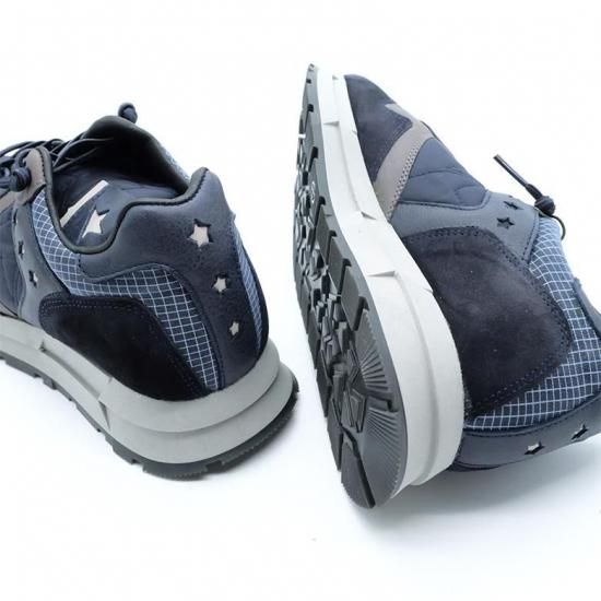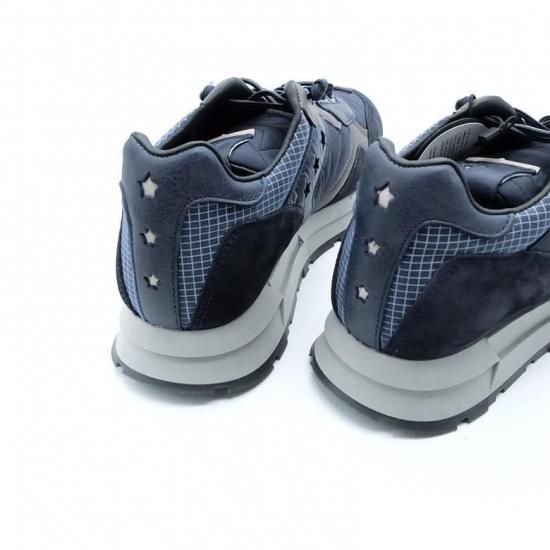 重厚感のあるトレイルスニーカータイプ。星を象ったステッチを施したナイロンメッシュとスエード、ワックスレザーのコンビネーション。